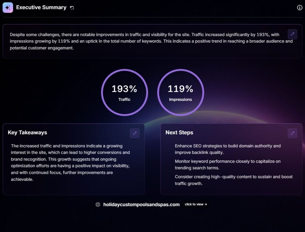 Holiday Custom Pools and Spas entered one of the most competitive markets in Arizona: custom pool construction. They needed to rank number one in Maricopa for custom pool builder searches to stop losing ground to aggressive competitors.