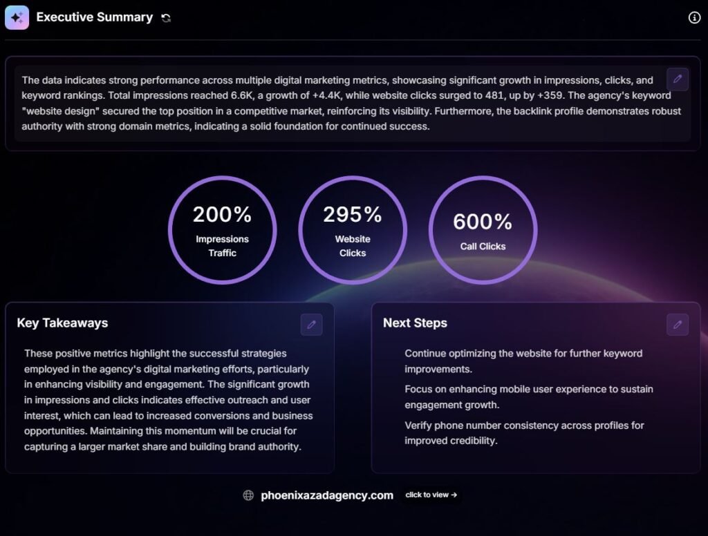 We specialize in service based businesses and understand how customers search in competitive local markets like Phoenix. Our work is structured around lead generation and revenue growth, not generic ranking reports.